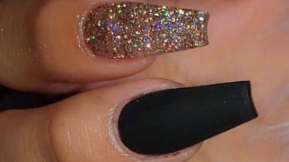 Black nails with gold glitter. See more ideas about nails nail designs and cute nails. The combination of black and gold is simply mind blowing and there are different stylish nail art designs one can experiment with when using these two awesome shades. Glitter nail art designs have become a constant favorite.